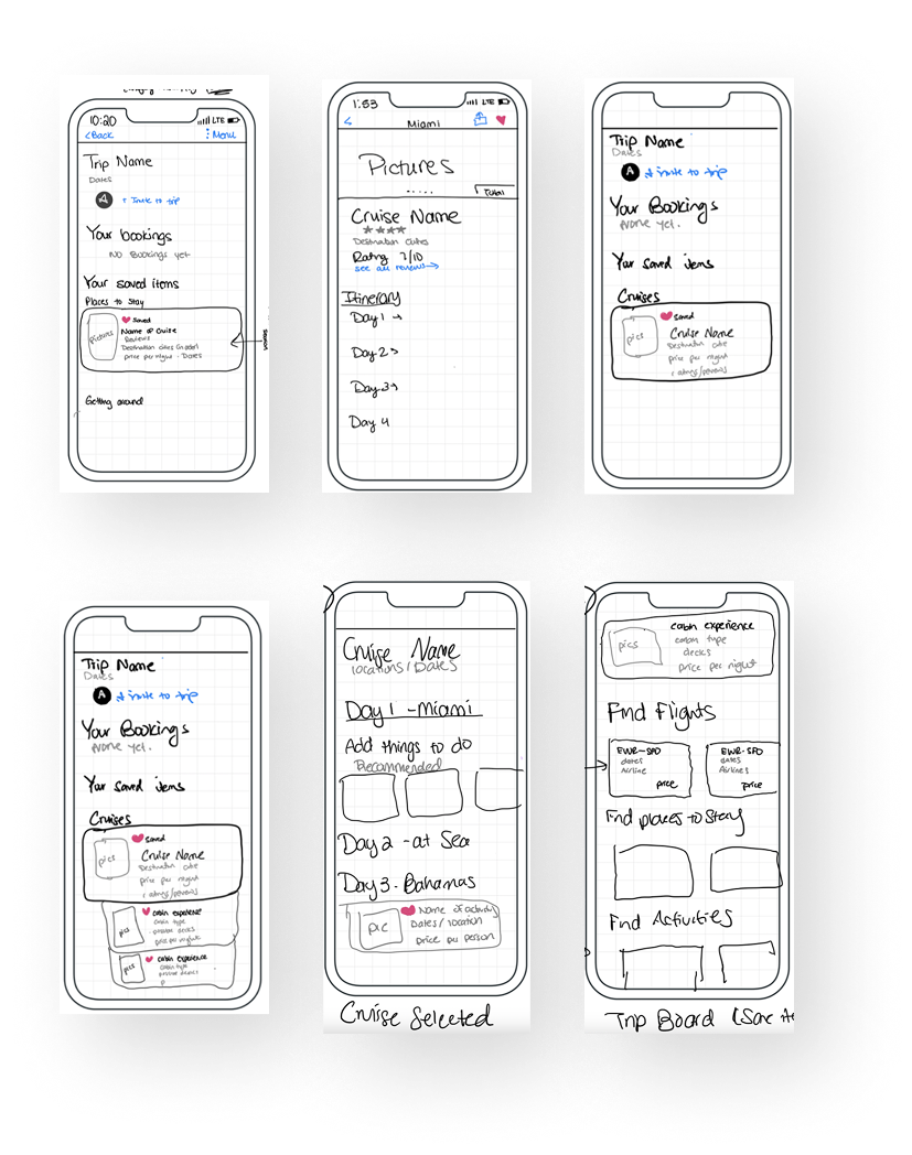 To give users a clearer picture of their cruise adventure, I designed a timeline view for the itinerary. Each day of the cruise was laid out chronologically, like a roadmap to their vacation. After booking a cruise, users could toggle between their saved and booked items and the itinerary builder. This powerful tool allow them to customize each day of the predetermined cruise route, adding activities in or around the city.